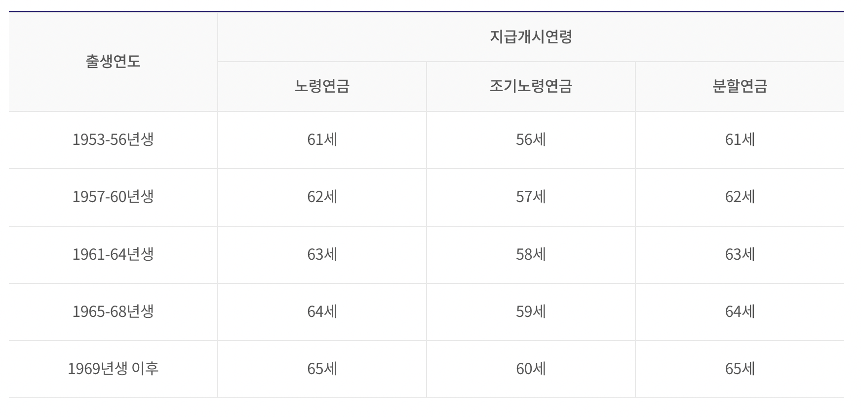 - 노령연금: 일정 연령(현재 기준 62세) 이상이 되면 지급받을 수 있습니다. 연금 수령 연령은 단계적으로 65세까지 상향될 예정입니다.